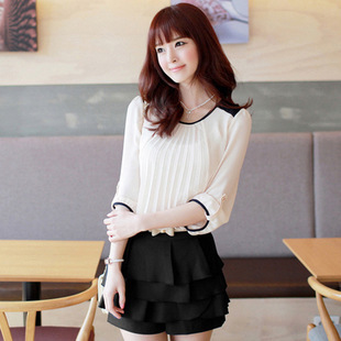 Áo sơ mi trắng làm từ chất liệu và kiểu cách mềm mại kết hợp cổ áo ren màu đen tạo sự nhã nhặn nền nã lịch sự cho người diện. Những kiểu áo thế này sẽ phù hợp nhất khi bạn diện cùng với chân váy.